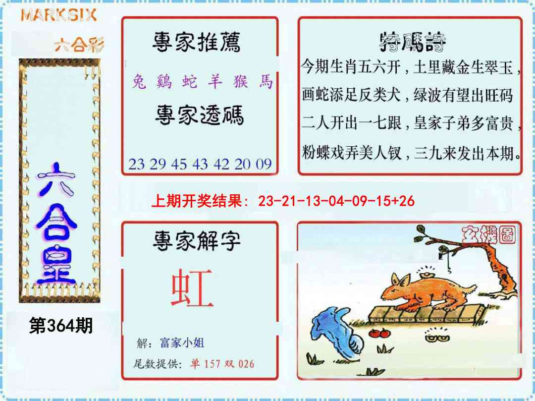 364期: 澳门六合彩彩圖信封【特码玄机】每期自动更新